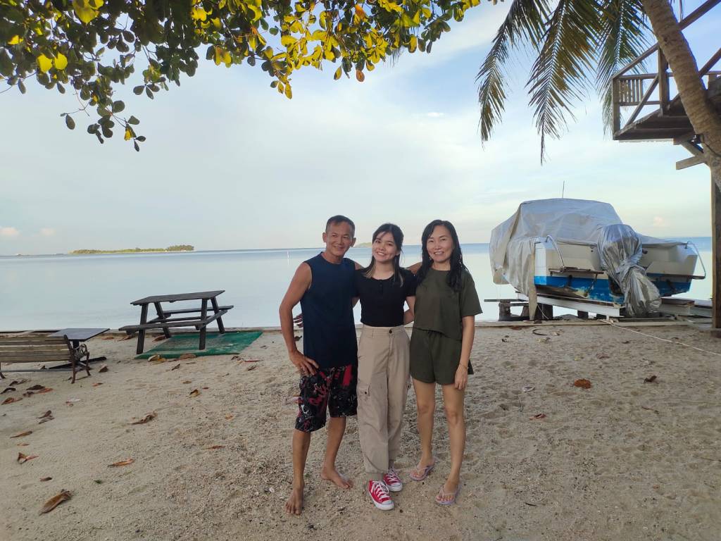 Đây là tấm hình mình chụp vào sáng hôm sau với 2 người bạn của chú khi tình cờ gặp lại lúc đang đi loanh quanh trên đảo.
